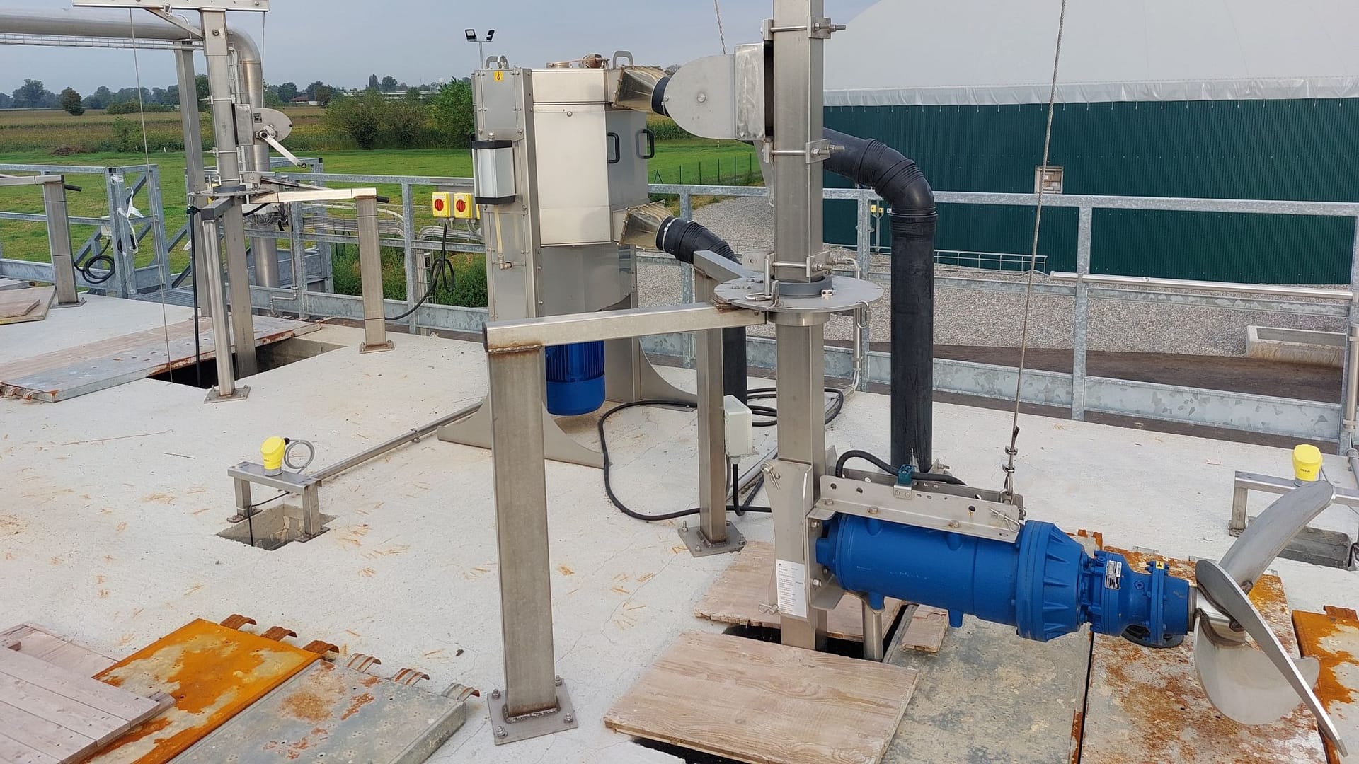 HMT-roerwerken met een externe elektrische motor zijn ontworpen voor optimale prestaties in anaerobe vergisters, digestaatbassins en voorbassins. De speciaal ontworpen roestvrijstalen propeller zorgt voor een efficiënte menging, zelfs bij vloeistoffen met een hoog gehalte aan vaste stoffen. Het modulaire ontwerp maakt verschillende vormen en afmetingen van de propeller mogelijk, waardoor de balans tussen prestaties en energie-efficiëntie wordt geoptimaliseerd.