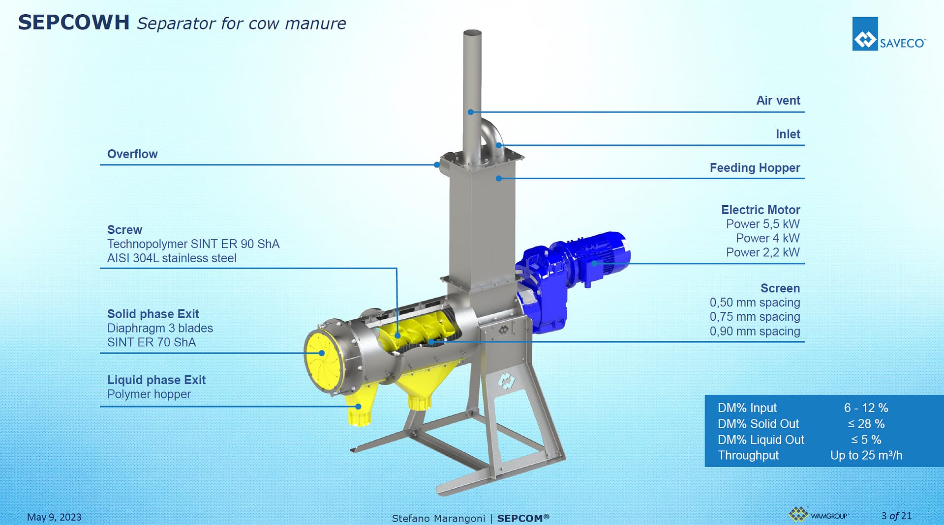 De SEPCOWH, SEPCOM COW Horizontal is een innovatieve vast-vloeistof-schroefpersscheider.